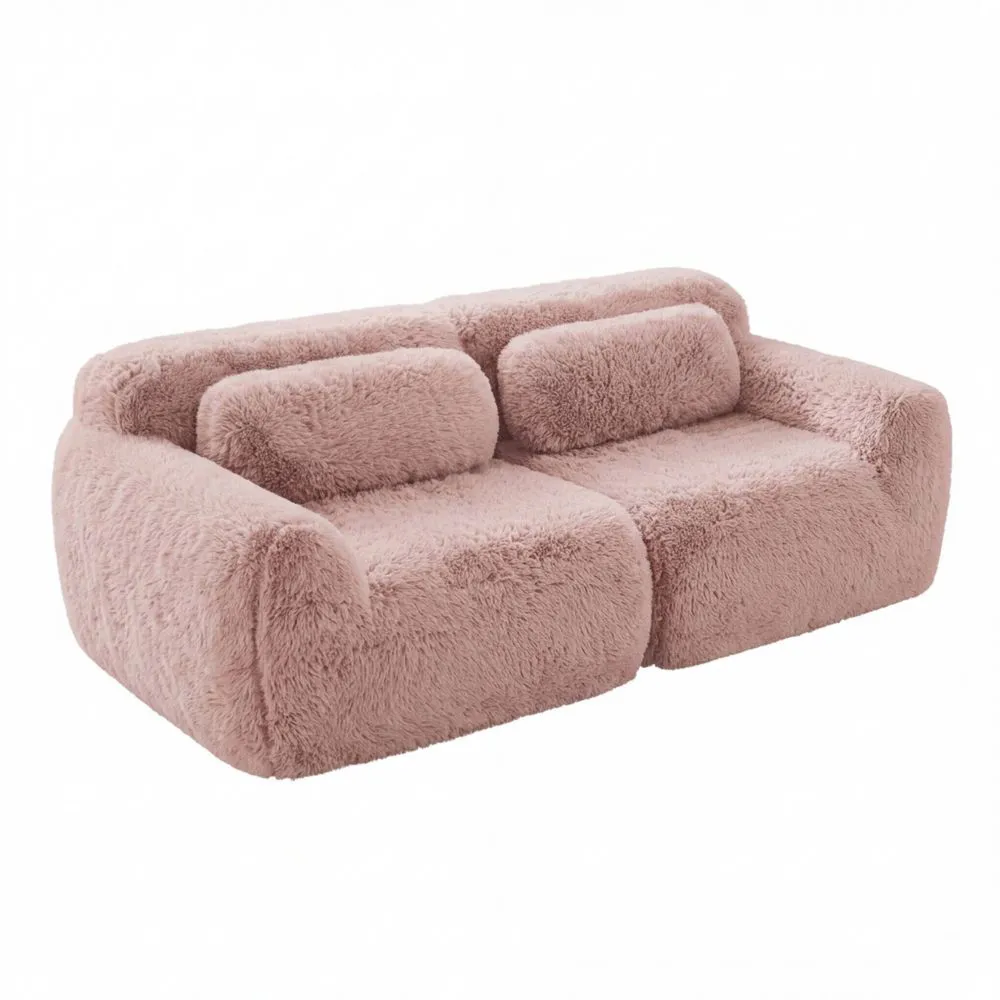 Sofá Esquinero Convertible con Cojines, Tela Suave, Modular y Desenfundable (2 Plazas Rosado)