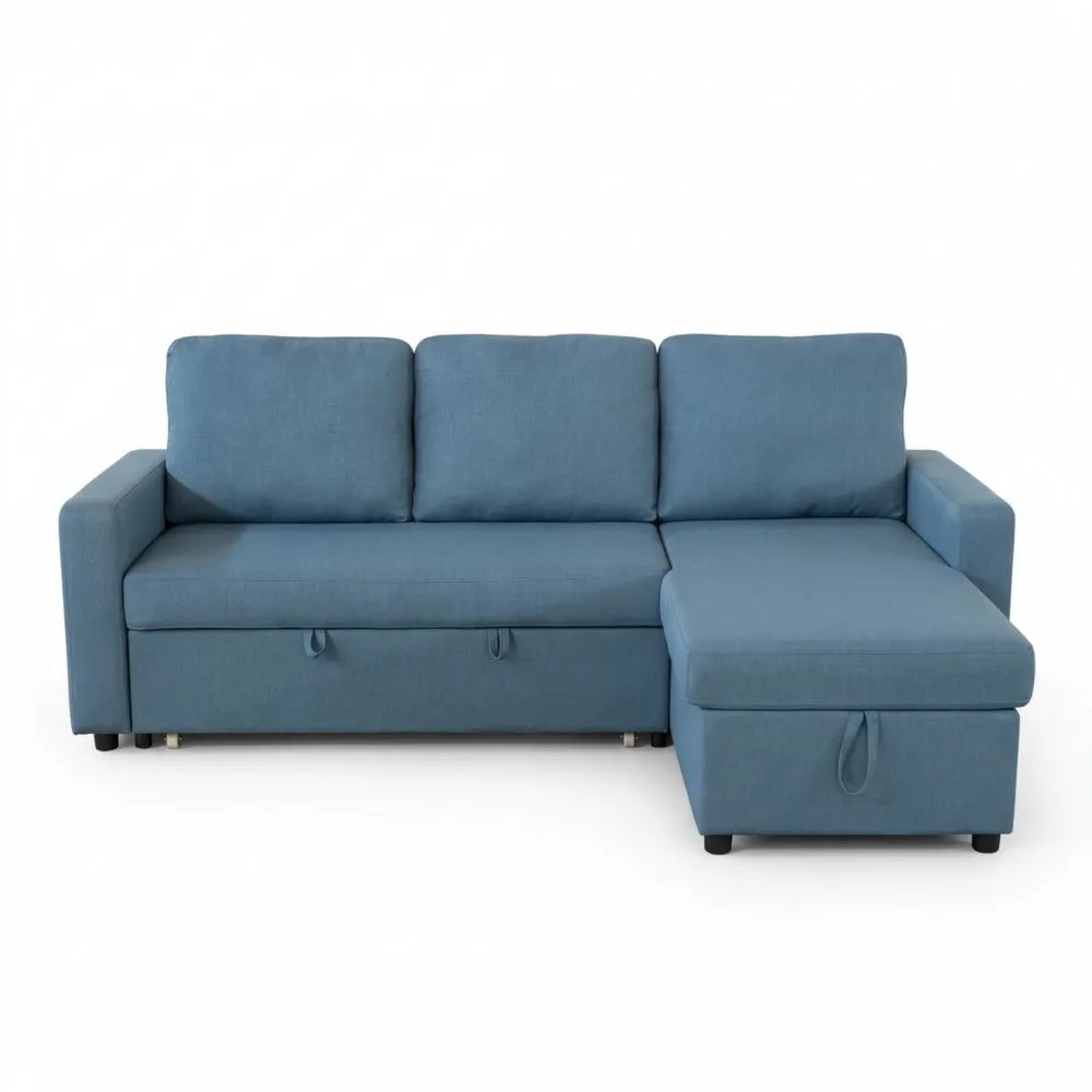 Sofá Chaise Longue de 3 Plazas con Arcón - Relajación y Comodidad Máxima - 230 x 84 x 96 cm - Azul