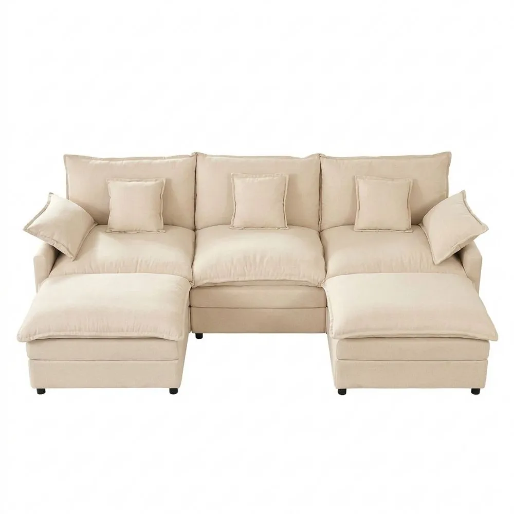 Sofá Modular en Forma de U, Sofá Esquinero de 3 Plazas con Taburete, Diseño de Asiento Profundo para Sala de Estar (Blanco Roto)