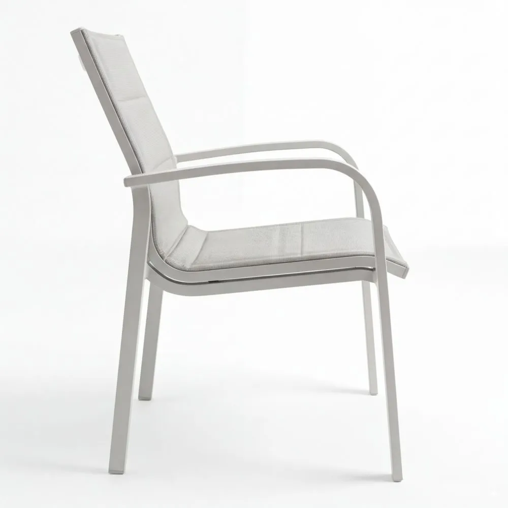 Set de 2 Sillas de Terraza para Exterior con Cojines y Reposabrazos, Material Textilene y Aluminio, Blanco