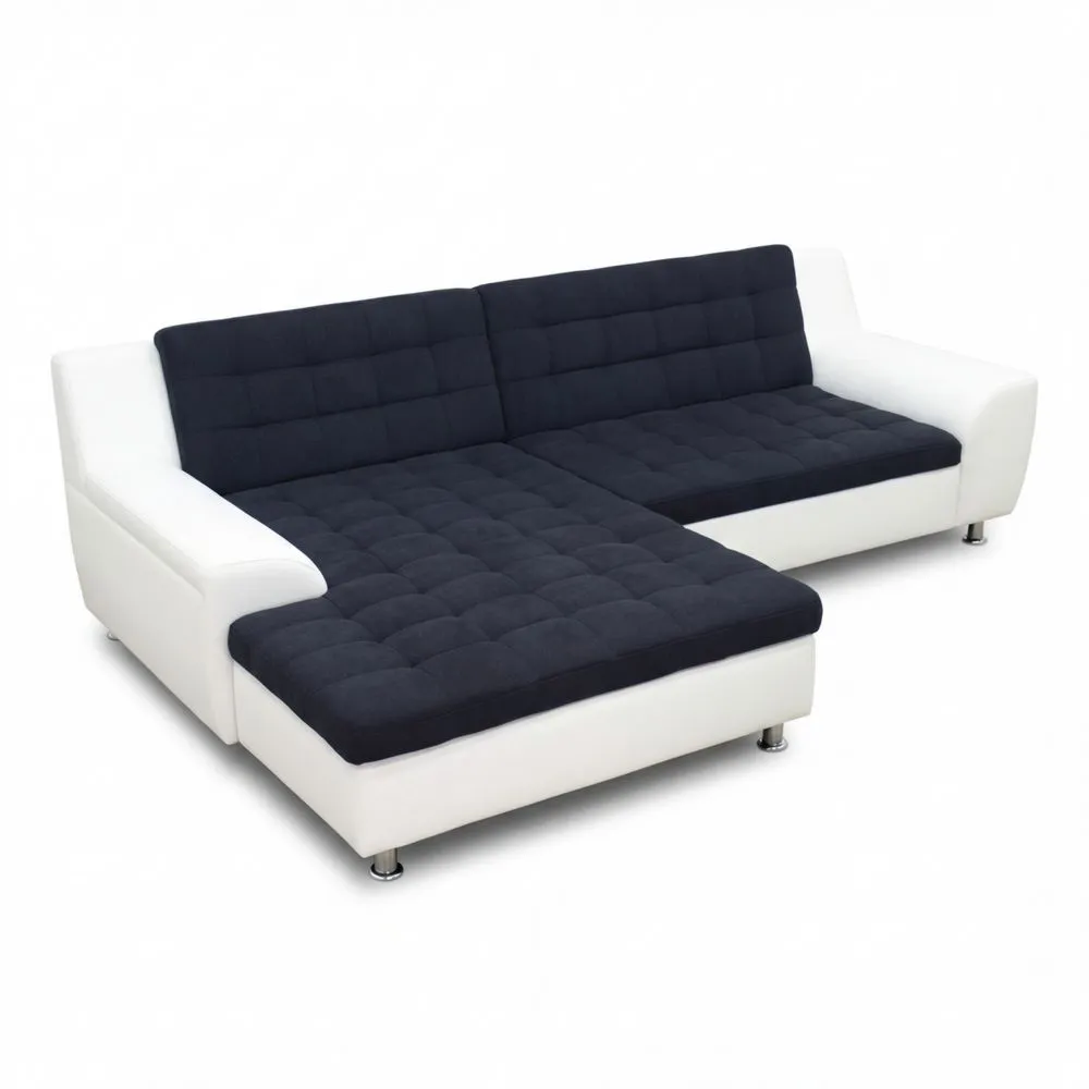 Sofá Esquinero en Forma de L de Cuero con Relleno de Microfibra, Imitación de Cuero, 304 x 200 x 84 cm, Negro/Blanco