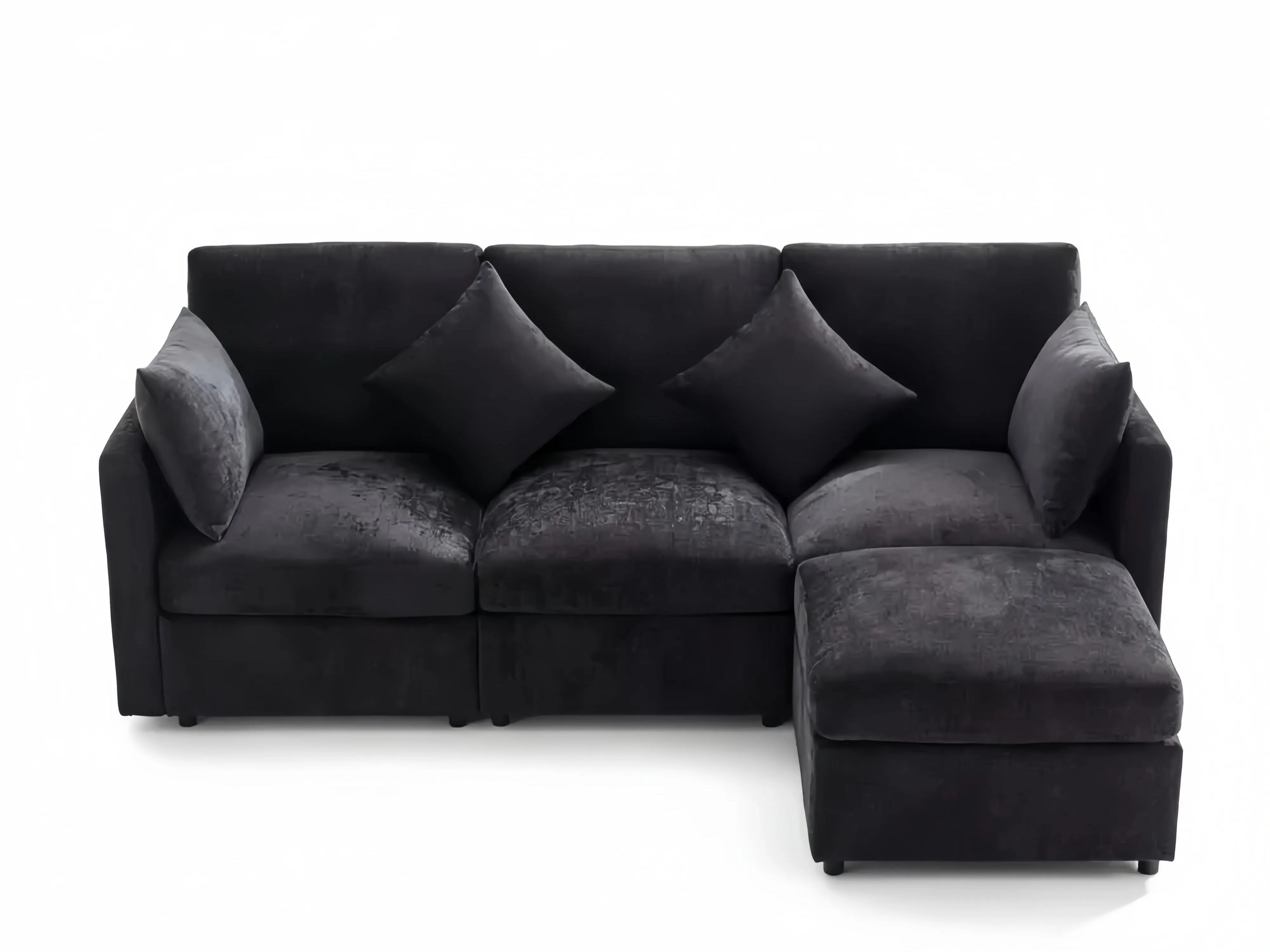 Sofá Modular de Chenilla en Forma de U con Asientos Reclinables